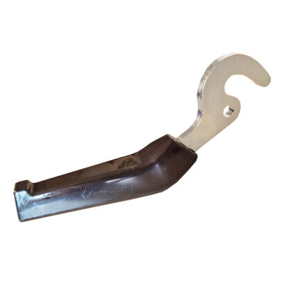 Rączka do zamykania drzwiczek z plastikowym uchwytem. Jest to specjalny stop tworzyw sztucznych, który gwarantuje bardzo dobrą odporność na wysokie temperaturyTworzywo to jest wyprofilowane pod kształt dłoni i estetycznie wykończone. Rączka zbudowana jest na zasadzie mimośrodu, polegającym na wyprofilowaniu tak kształtu haka rączki aby wraz z zamykaniem coraz bardziej dociągał drzwiczki. Dzięki temu mamy gwarancję szczelnego i trwałego zamknięcia wszystkich drzwiczek kotła.Kolor uchwytu rączki czerwony. Wymiary: