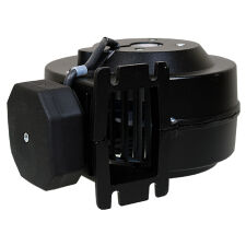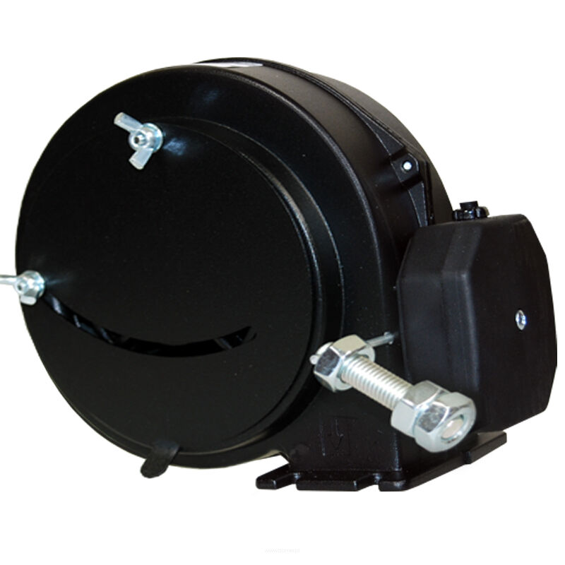Dmuchawa do kotła z podajnikiem wentylator DM 80 z przesłoną O klapką na wylocie przewodem 2 m puszką na kołnierzu silnik EBM