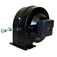 Dmuchawa do kotła z podajnikiem wentylator DM 85 czarna z przesłoną X klapką w kołnierzu przewód 2 m silnik EBM