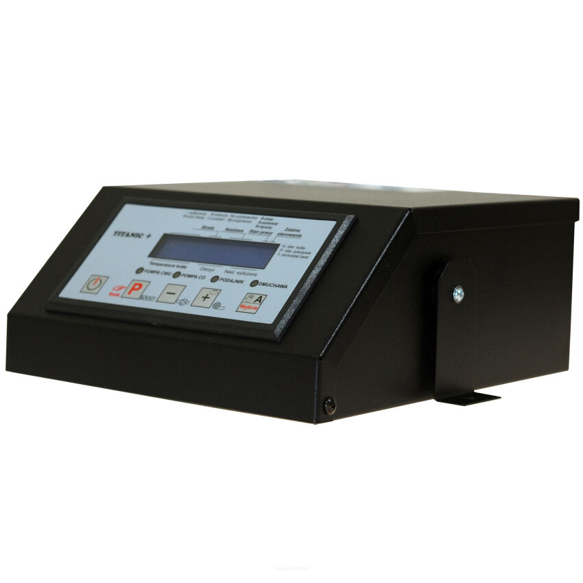 Regulator TITANIC 1 S przeznaczony jest do sterowania kotłami ze ślimakowym lub tłokowym podajnikiem paliwa. Wersja oferowana na tej aukcji steruje podajnikiem ślimakowym. Proces regulacji realizowany jest przez pomiar temperatury cieczy w kotle C.O. i odpowiednie sterowanie procesem spalania paliwa w kotle nie dopuszczając do jego wygaśnięcia.
