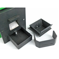 Zbiornik pellet wykonany ze stali ocynkowanej o grubości 1 mm. Części zbiornika są wypalane na wycinarkach laserowych, następnie zaginane na zaginarkach krawędziowych co wpływa na dokładne i spasowane elementy.