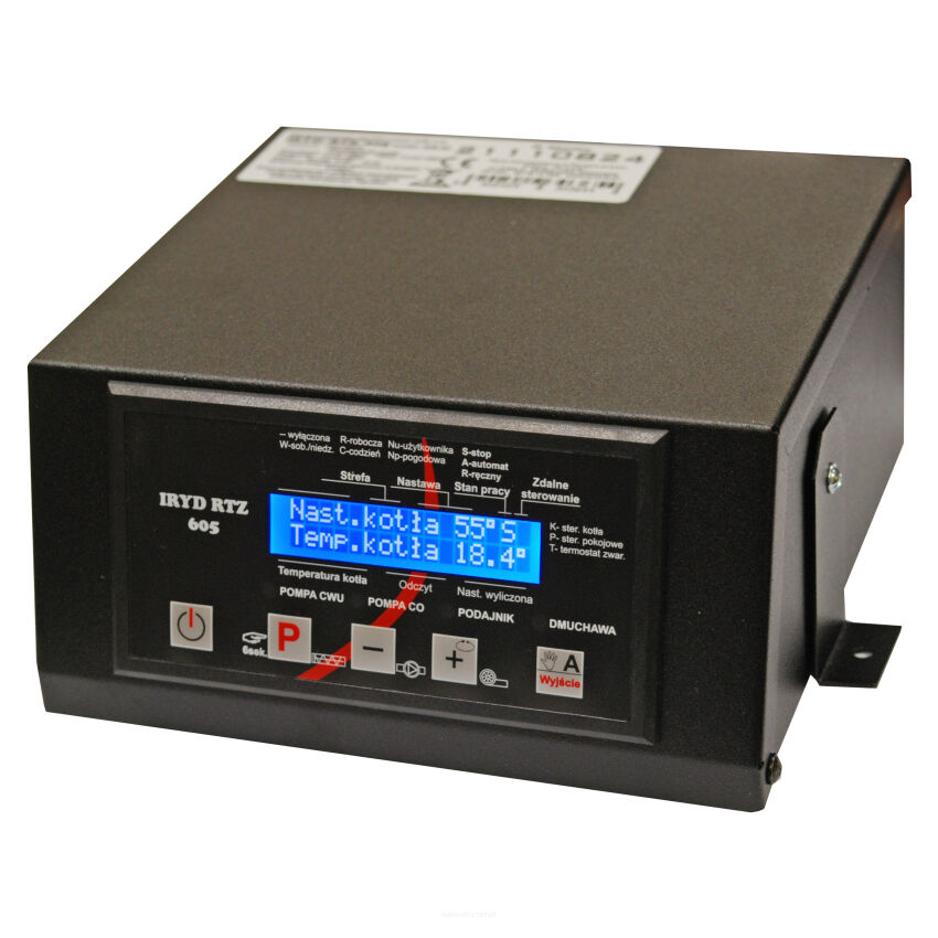 Regulator Iryd przeznaczony jest do sterowania kotłami ze ślimakowym lub tłokowym podajnikiem paliwa. Wersja oferowana na tej aukcji steruje podajnikiem ślimakowym. Proces regulacji realizowany jest przez pomiar temperatury cieczy w kotle C.O. i odpowiednie sterowanie procesem spalania paliwa w kotle nie dopuszczając do jego wygaśnięcia.