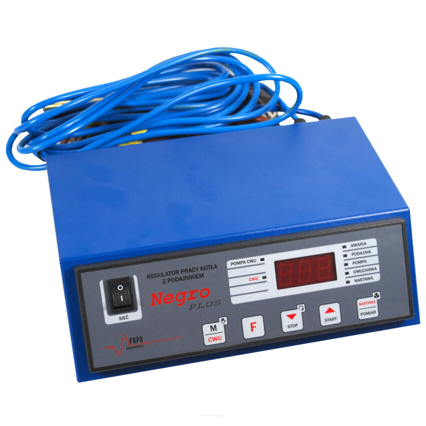 Mikroprocesorowy regulator temperatury kotła „Tango Negro” jest urządzeniem służącym do kontroli pracy kotła z podajnikiem opału. Pozwala na regulacje temperatury wody w instalacji poprzez sterowanie elementami wykonawczymi kotła tj. podajnikiem paliwa, dmuchawa i pompa obiegowa.